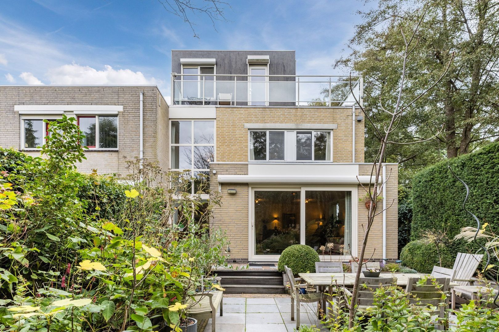 The front garden is also well-kept and functional. Here you can easily park two cars on your own property. The front garden also has a direct access to the garage.